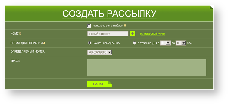 После ввода списка номеров, в поле «ТЕКСТ» нужно вписать текст сообщения и нажать на кнопку «НАЧАТЬ». После этого SMS будут отправлены всем указанным адресатам.